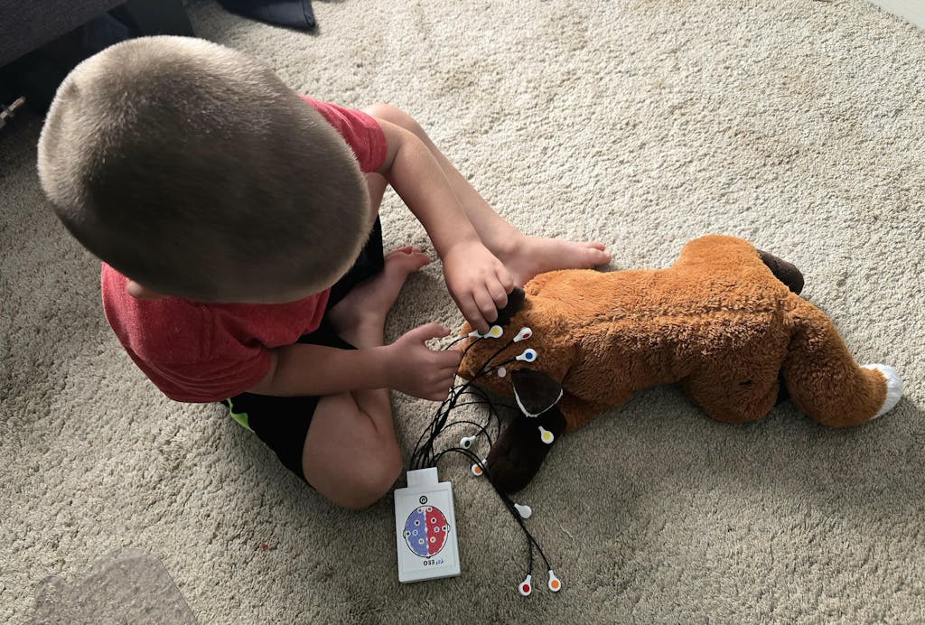 Made exclusively by The Butterfly Pig, this toy is interactive, realistic, and cleanable so it can be used for educational purposes, and in pretend play! An EEG monitors brain waves; and these types of devices are often used for sleep studies or monitoring seizure activity.