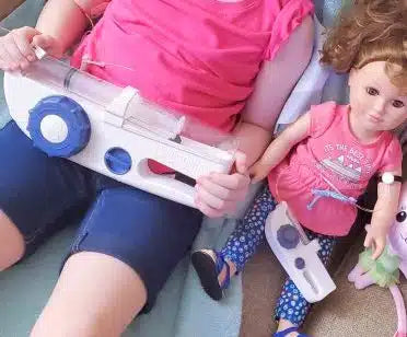 Our toys are made so you can use them with dolls and stuffed animals you already own, so children with assistive devices can now match and be represented by their favorite toys.